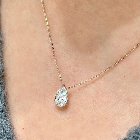 1.0ct F VS1 ラボグロウダイヤモンド プラチナペンダント【ペアシェイプ】[IGI鑑定書付き]